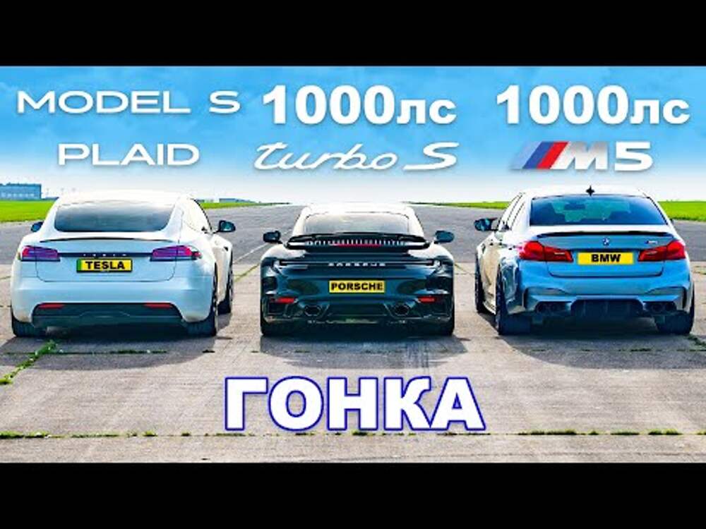 M5 (1000 л.с.) против 911 Turbo S (1000 л.с.) против Model S Plaid (1000 л.с.): ГОНКА