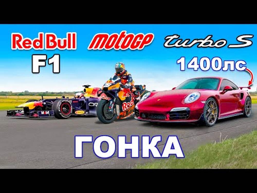 Новое видео: Болид F1 против Moto GP против Porsche (1400 л.с.): ГОНКА